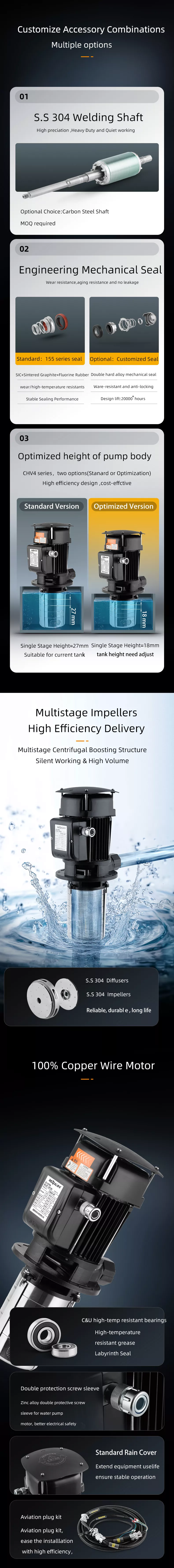 Ce qui suit est une introduction de la série CHV. La pompe centrifuge multicellulaire immergée CHV, spécialement conçue pour le pompage de lubrifiants de refroidissement pour machines-outils, et pour être montée sur des réservoirs avec la pile de pompes immergée dans le liquide pompé. Les pompes STAIRS SBK sont disponibles avec différentes tailles de pompe et différents nombres d'étages pour fournir le débit, la pression et la longueur requis.