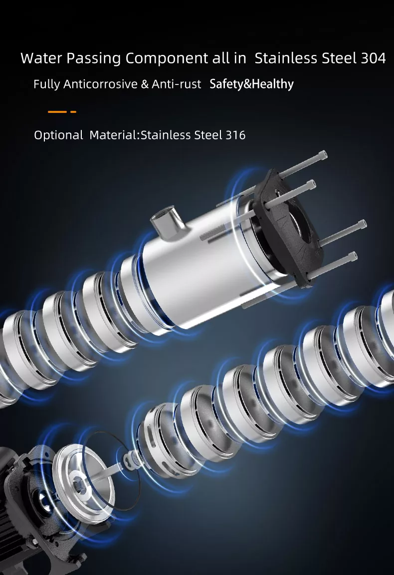 De l'alimentation en eau et de l'augmentation de la pression aux systèmes de refroidissement et de circulation industriels, notre pompe à plusieurs étapes horizontale en acier inoxydable est suffisamment polyvalente pour gérer une large gamme d'applications. Sa configuration à plusieurs étapes permet des capacités de pression plus élevées, ce qui le rend idéal pour une utilisation dans des immeubles de grande hauteur et des installations commerciales.